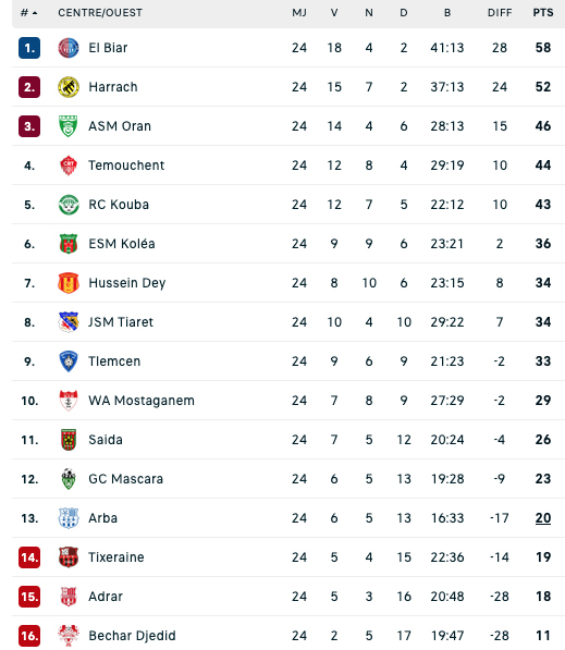 Ces résultats interviennent au lendemain des rencontres disputées vendredi, marquées notamment par les victoires de l’ASM Oran (3e, 46 pts) contre le WA Tlemcen (1-0), du CR Témouchent (4e, 44 pts) face à l’US Béchar Djedid (3-0), ainsi que du RC Kouba (5e, 43 pts) devant l’ESM Koléa (2-1).